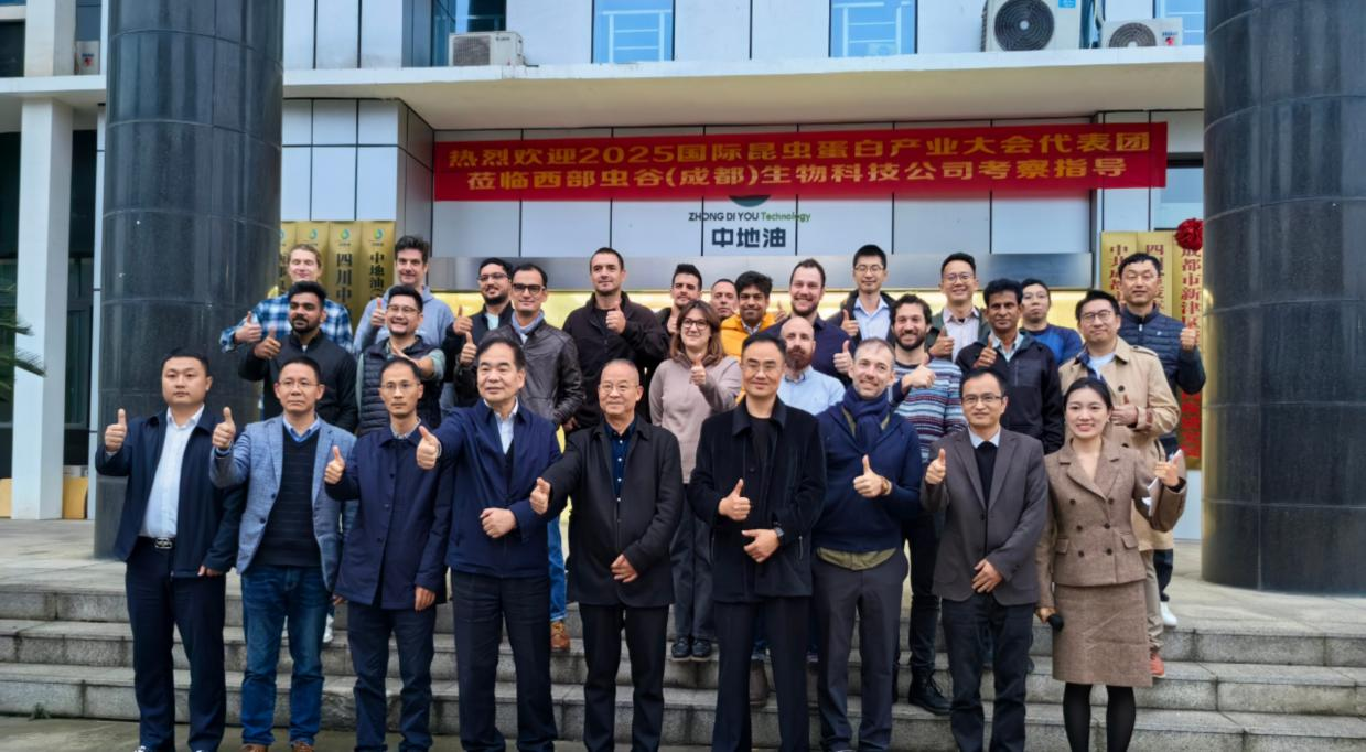 国际昆虫蛋白产业大会代表团莅临中地油集团考察 共探餐厨垃圾资源化与昆虫蛋白产业新未来 11月9日,2025国际昆虫蛋白产业大会代表团一行莅临中地油(成都)环境治理集团考察交流。本次代表团由来自12个国家的行业专家、企业代表及中国食品土畜进出口商会田泓主任一行共同组成。中地油集团董事长王金华、总裁奚正宁率核心团队接待,全面展示了公司在餐厨垃圾资源化利用与昆虫蛋白领域的技术成果。
